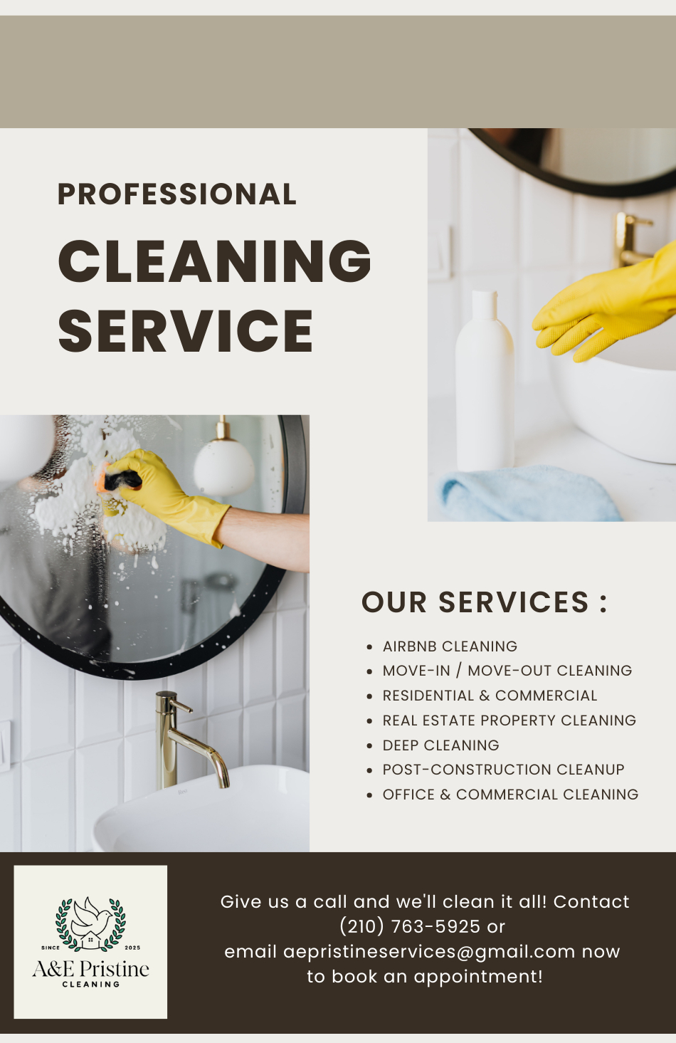 At A E Pristine Cleaning, we believe every space deserves to shine. Our team specializes in delivering high-quality residential and commercial cleaning services that go beyond the surface — leaving your home or business spotless, refreshed, and truly pristine.