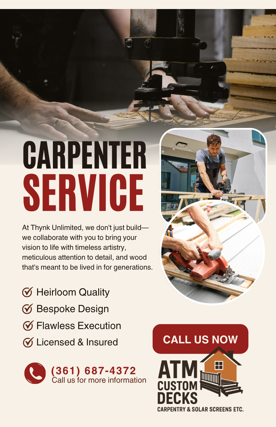 From concept to completion, ATM Custom Decks builds it right — every time. Call us today to start your next home project!