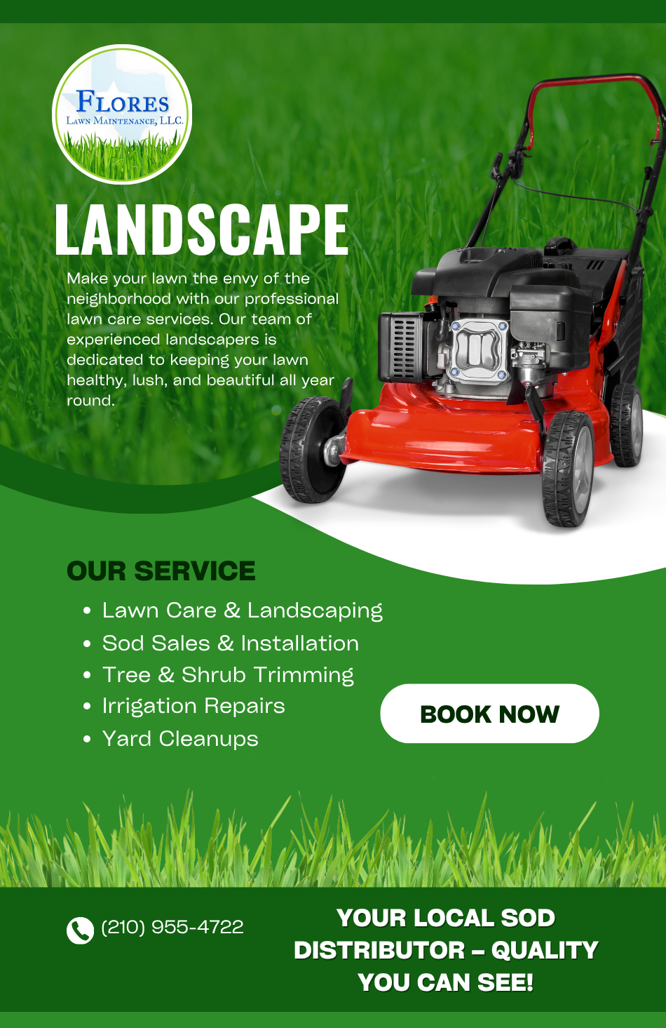 Family owned and operated by Robert & John Flores, we take pride in every yard we touch. From expert lawn care to professional sod installation, we’re your trusted local team for creating lush, beautiful lawns that last. As your new local sod distributor, we offer the best prices with installation included — ensuring top-quality results and unbeatable value. Whether you’re refreshing your front yard or starting from scratch, Flores Lawn Maintenance delivers reliable service, honest work, and results you’ll love every time.