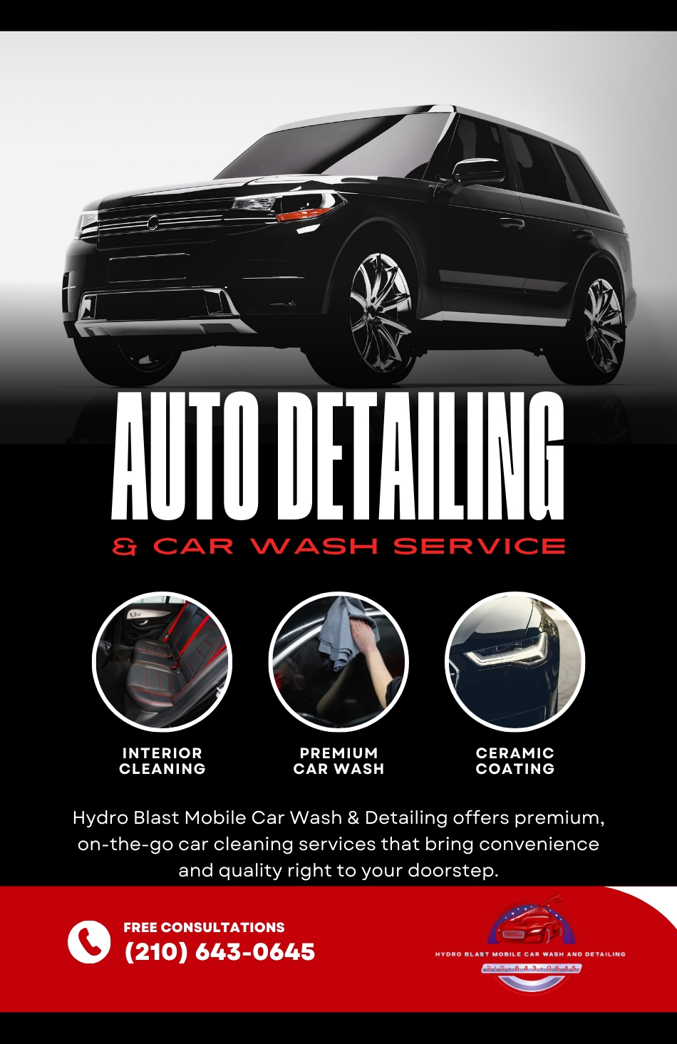 Hydro Blast Mobile Car Wash & Detailing offers premium, on-the-go car cleaning services that bring convenience and quality right to your doorstep. Specializing in exterior washes, interior detailing, ceramic coatings, and paint correction, we use eco-friendly products and advanced techniques to ensure a spotless finish. Whether at home or work, we provide top-tier service to keep your vehicle looking its best. Experience the ultimate shine with Hydro Blast—where convenience meets perfection!