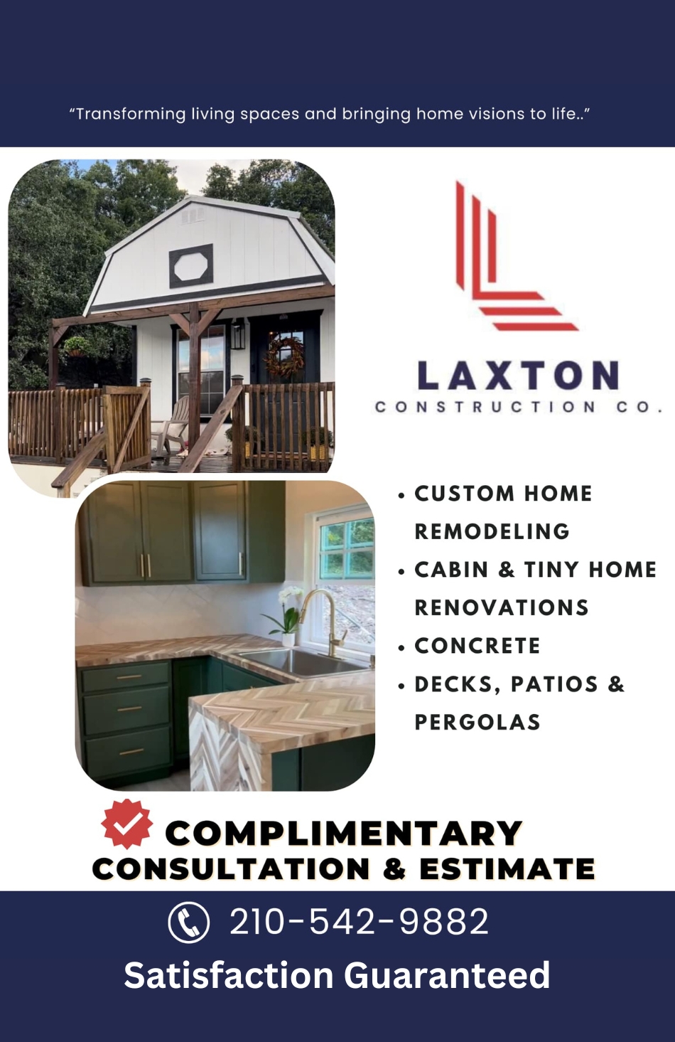 Laxton Construction is committed to delivering top-tier services that transform your living space with quality craftsmanship and attention to detail. Our skilled general contractors are ready to guide you through every step of the process, ensuring your vision becomes a reality. We specialize in custom home remodeling, kitchen and bathroom remodels, cabin, tiny home, and shed renovations, demolitions, concrete work, and the design and construction of decks, patios, and pergolas. No matter the project, we bring expertise, precision, and dedication to every job. Contact Laxton Construction today and let us build the space you’ve always dreamed of!