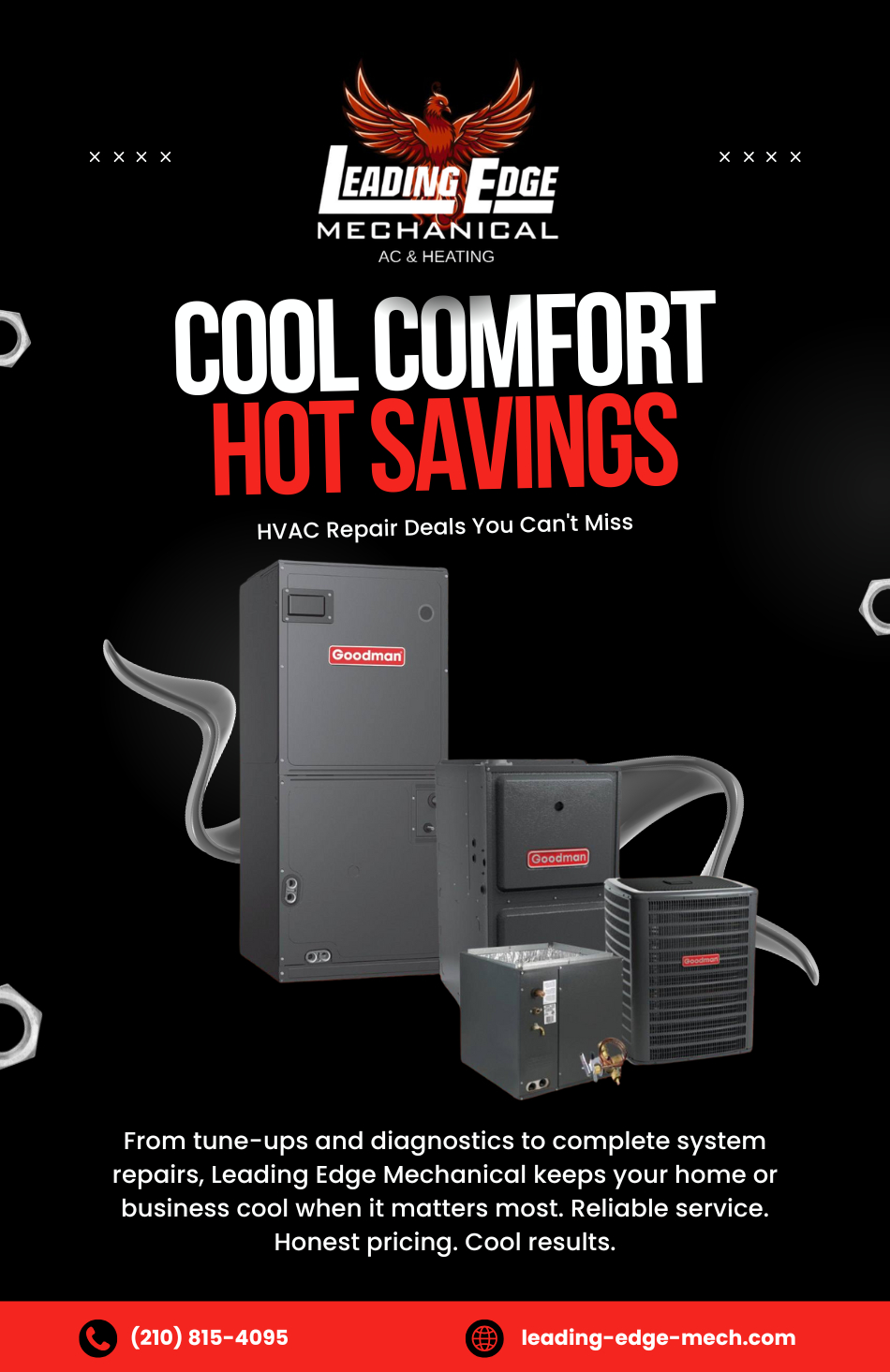 From tune-ups and diagnostics to complete system repairs, Leading Edge Mechanical keeps your home or business cool when it matters most. Reliable service. Honest pricing. Cool results.