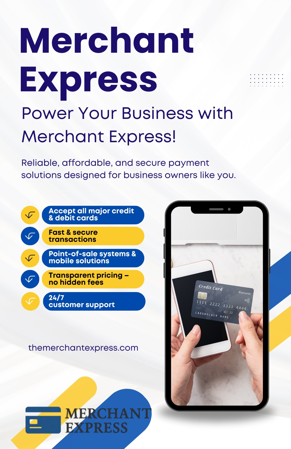 Merchant Express is a trusted merchant service provider dedicated to helping businesses of all sizes accept payments quickly, securely, and affordably. From point-of-sale systems and mobile payment solutions to e-commerce integrations and transparent processing rates, Merchant Express delivers everything you need to run your business efficiently. With personalized support, cutting-edge technology, and a commitment to your growth, Merchant Express makes it easy to streamline transactions and boost your bottom line.