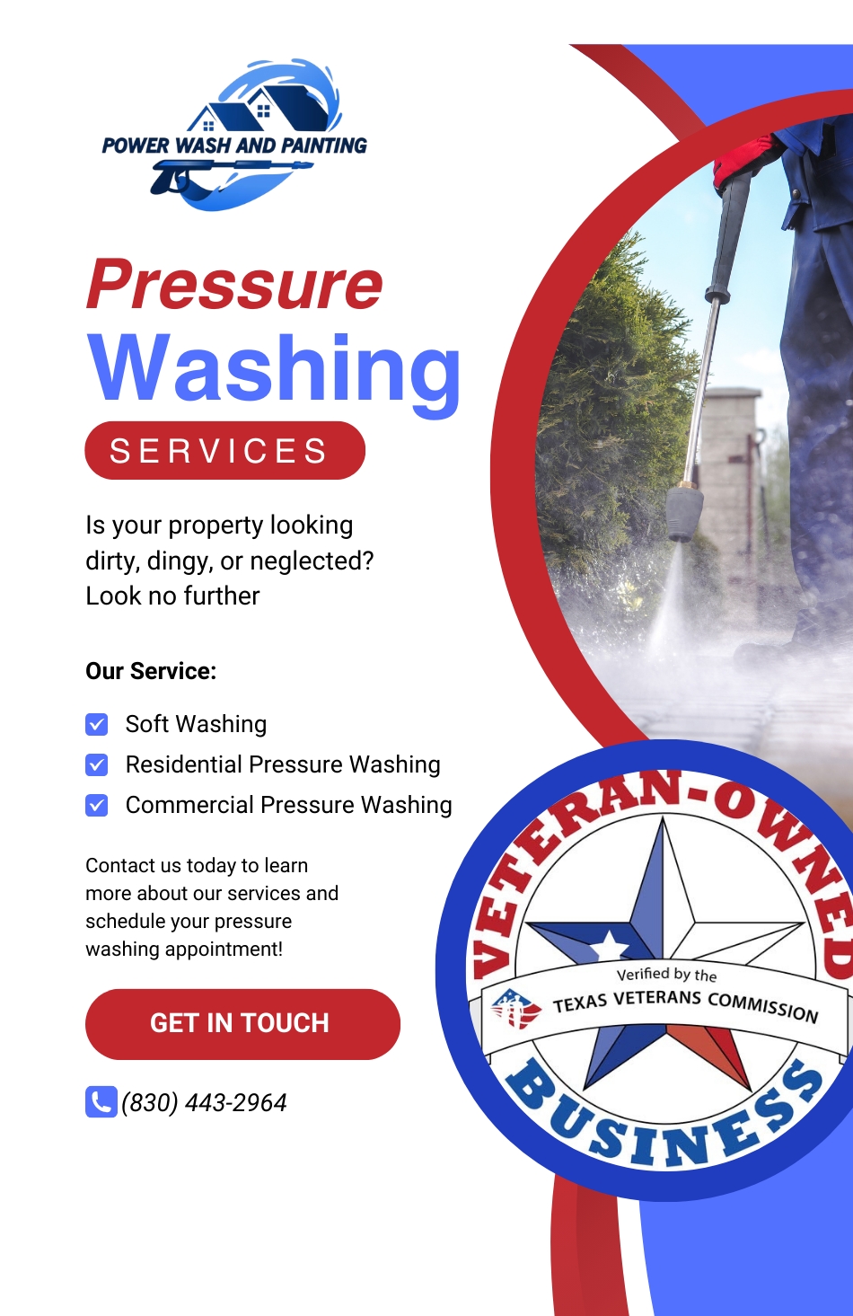 Power Wash and Painting is a veteran-owned and operated business dedicated to providing top-quality exterior cleaning and painting services. Specializing in power washing for homes, driveways, sidewalks, fences, and commercial properties, we remove dirt, grime, and mildew to restore surfaces to their original beauty. Our professional painting services include interior and exterior projects, ensuring a fresh and lasting finish. With a commitment to excellence, integrity, and attention to detail, we take pride in delivering exceptional results for every customer. Contact us today for reliable and professional service you can trust!